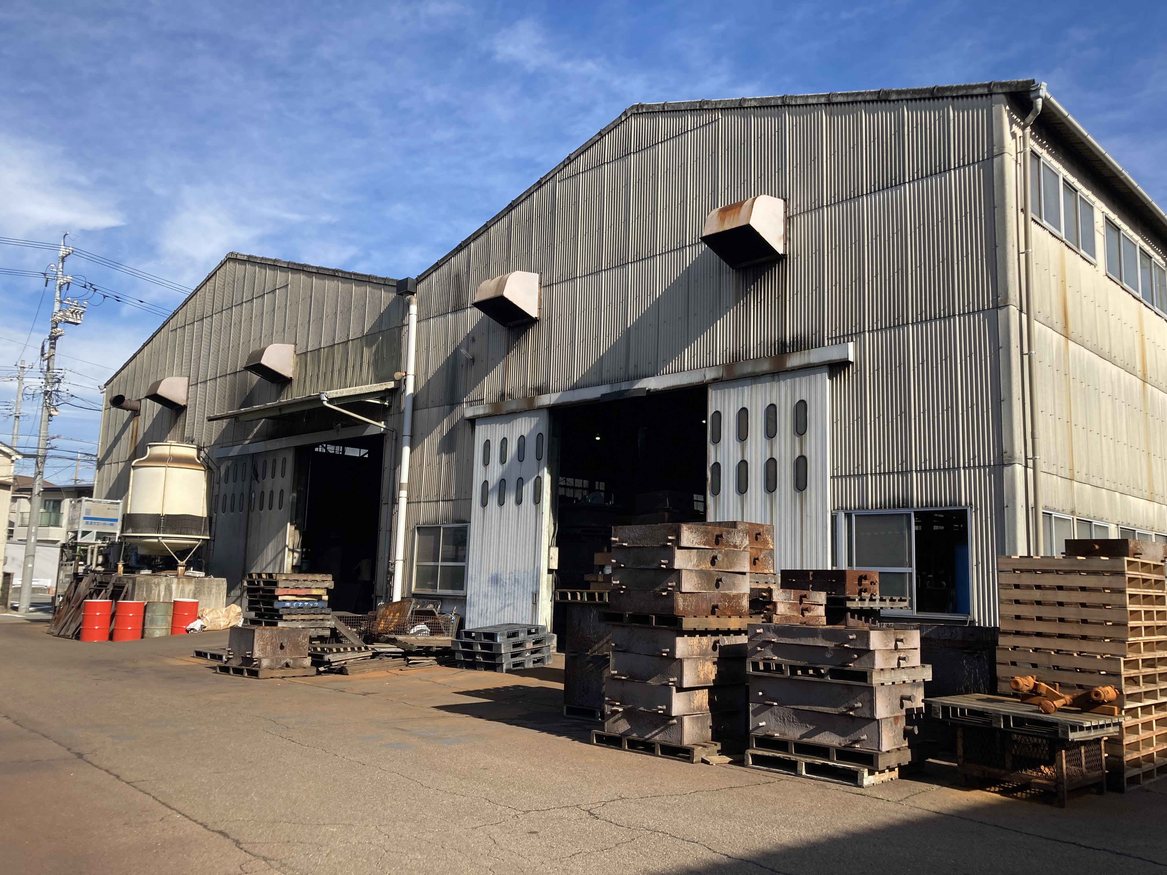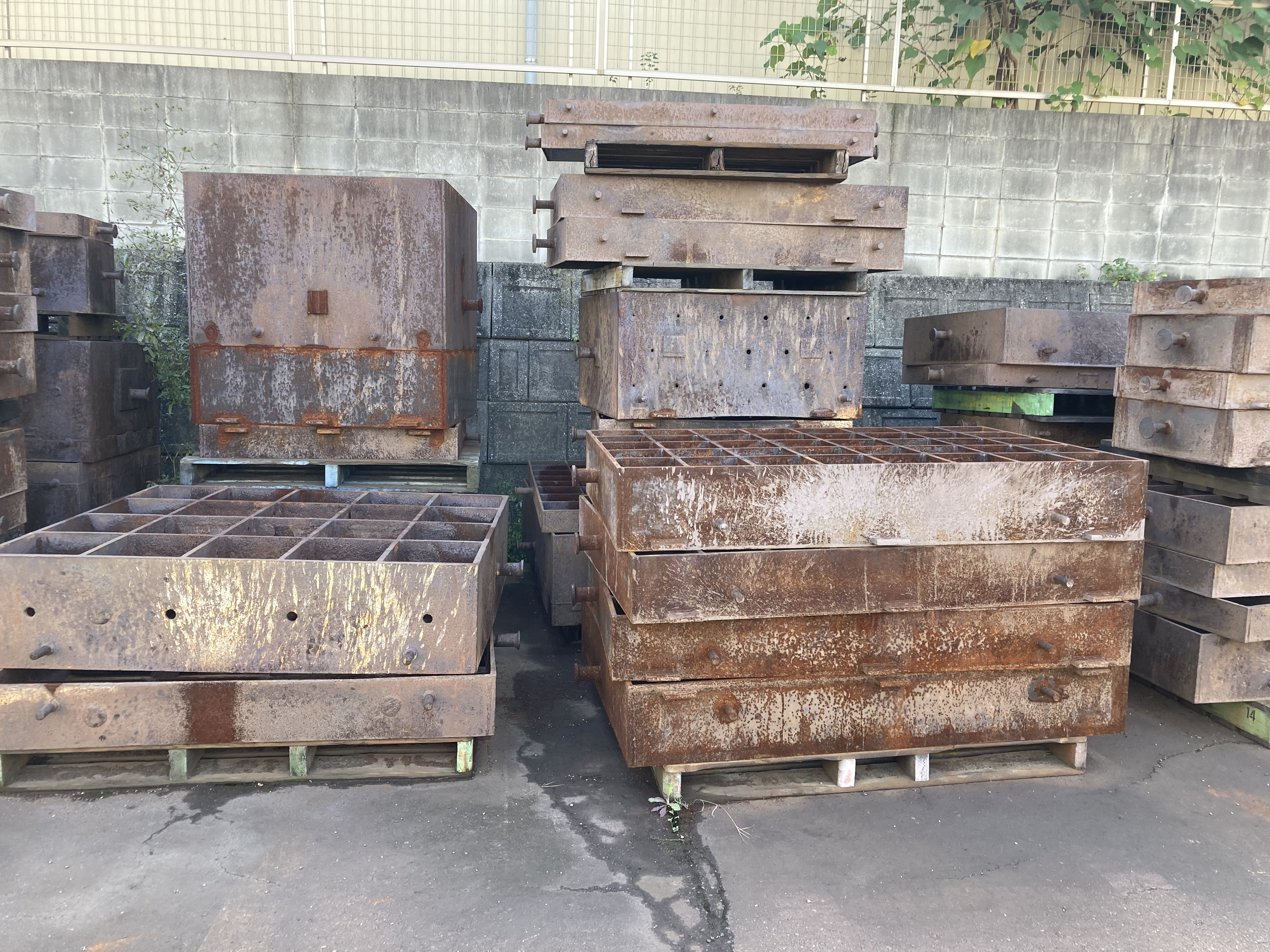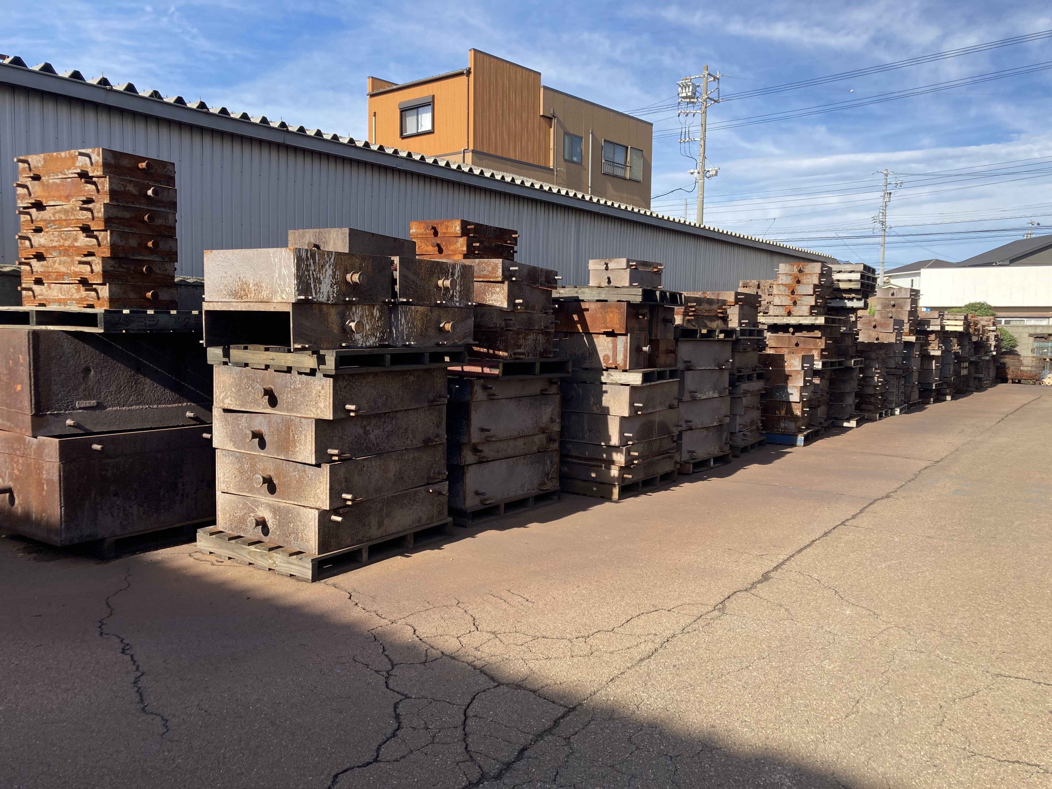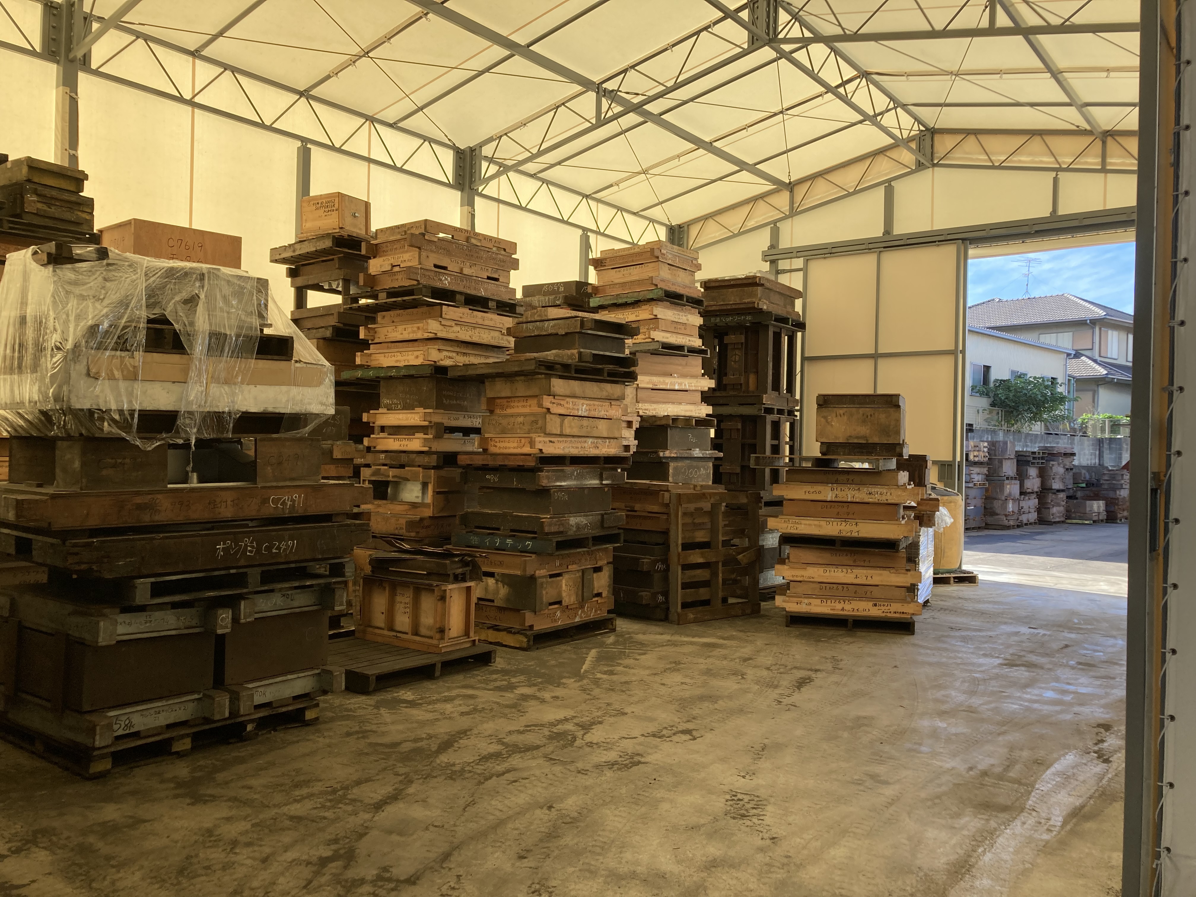 広い敷地に大小各種の金枠を常備し、テント倉庫等に木型を置く