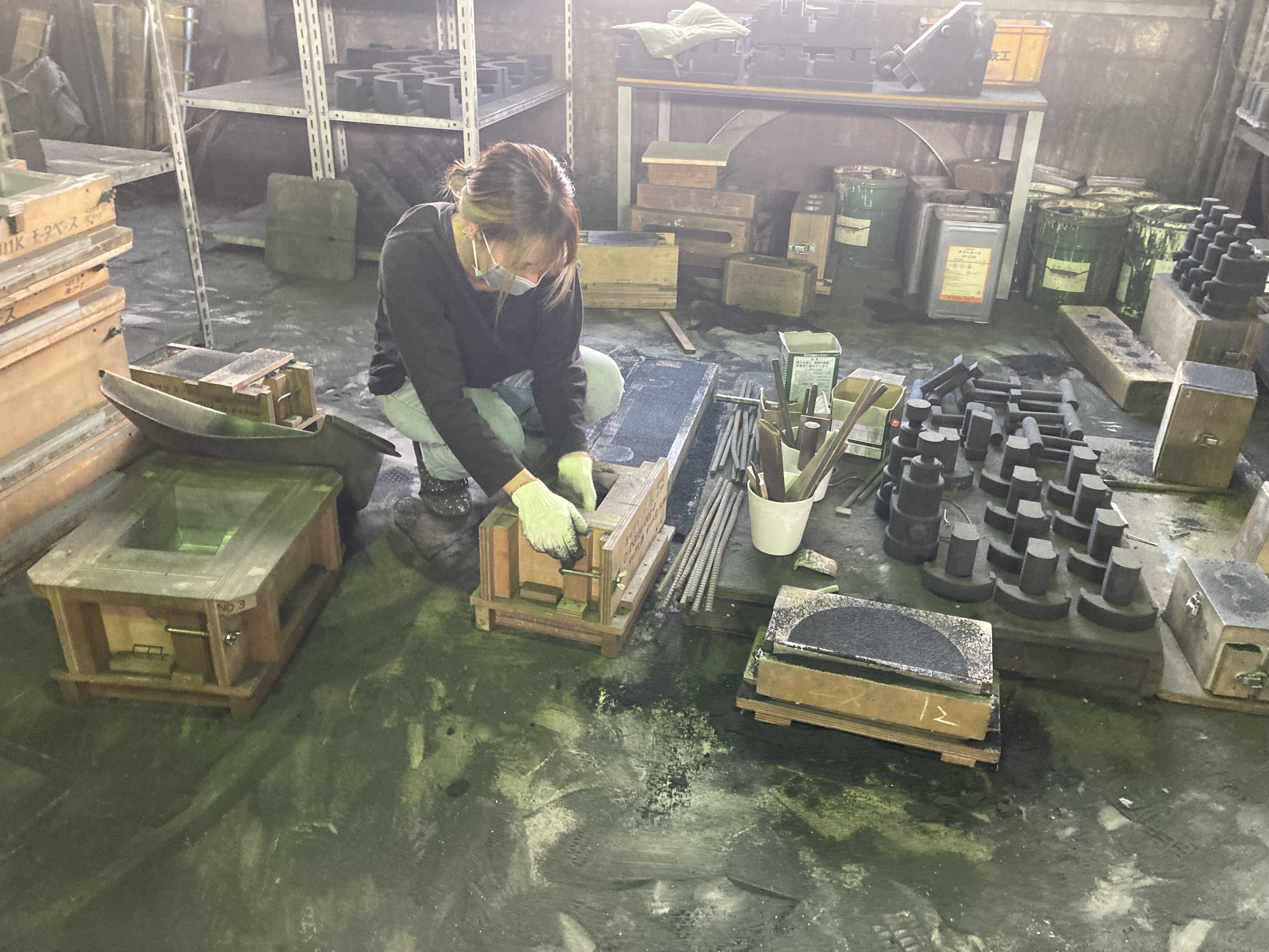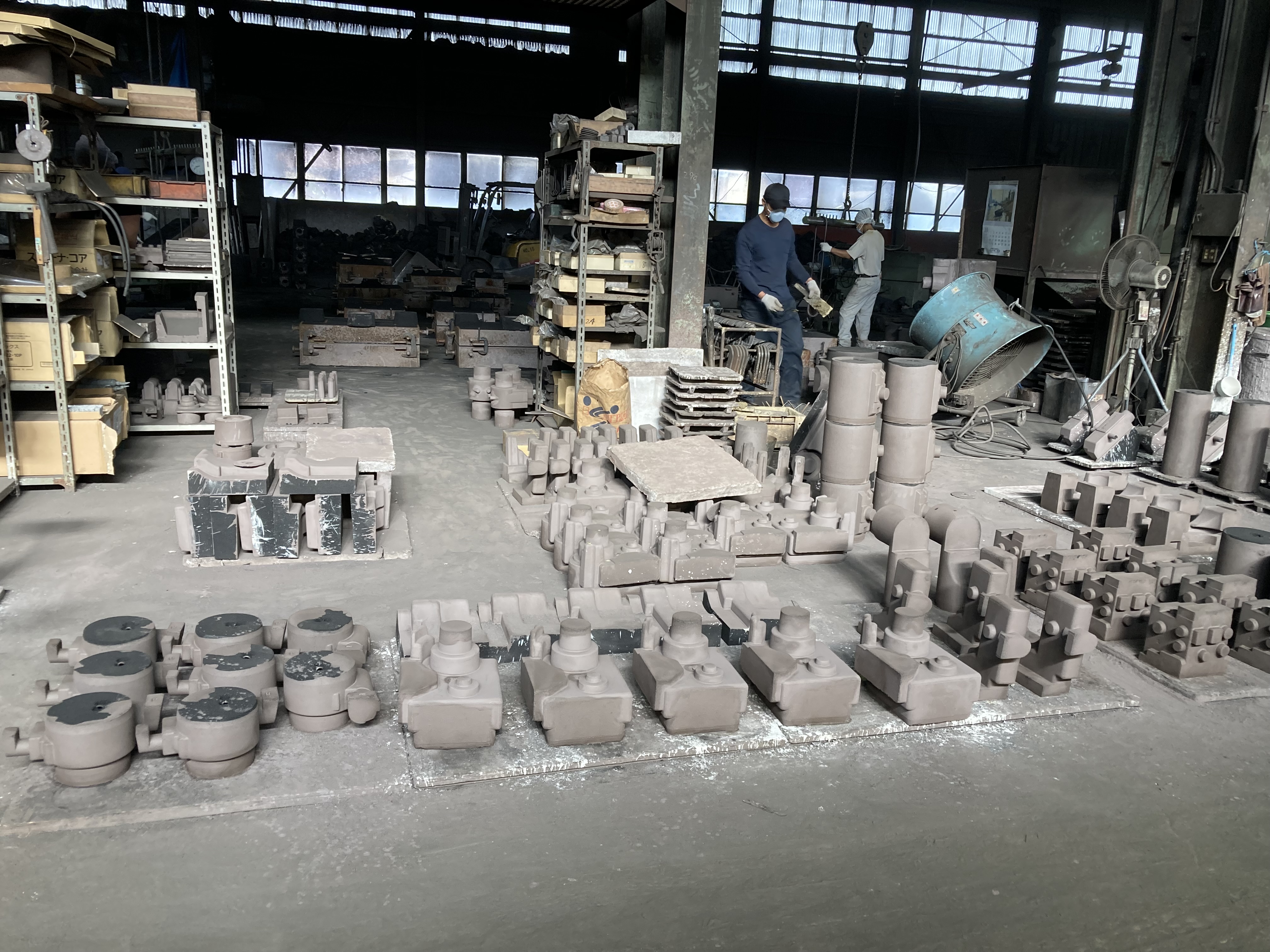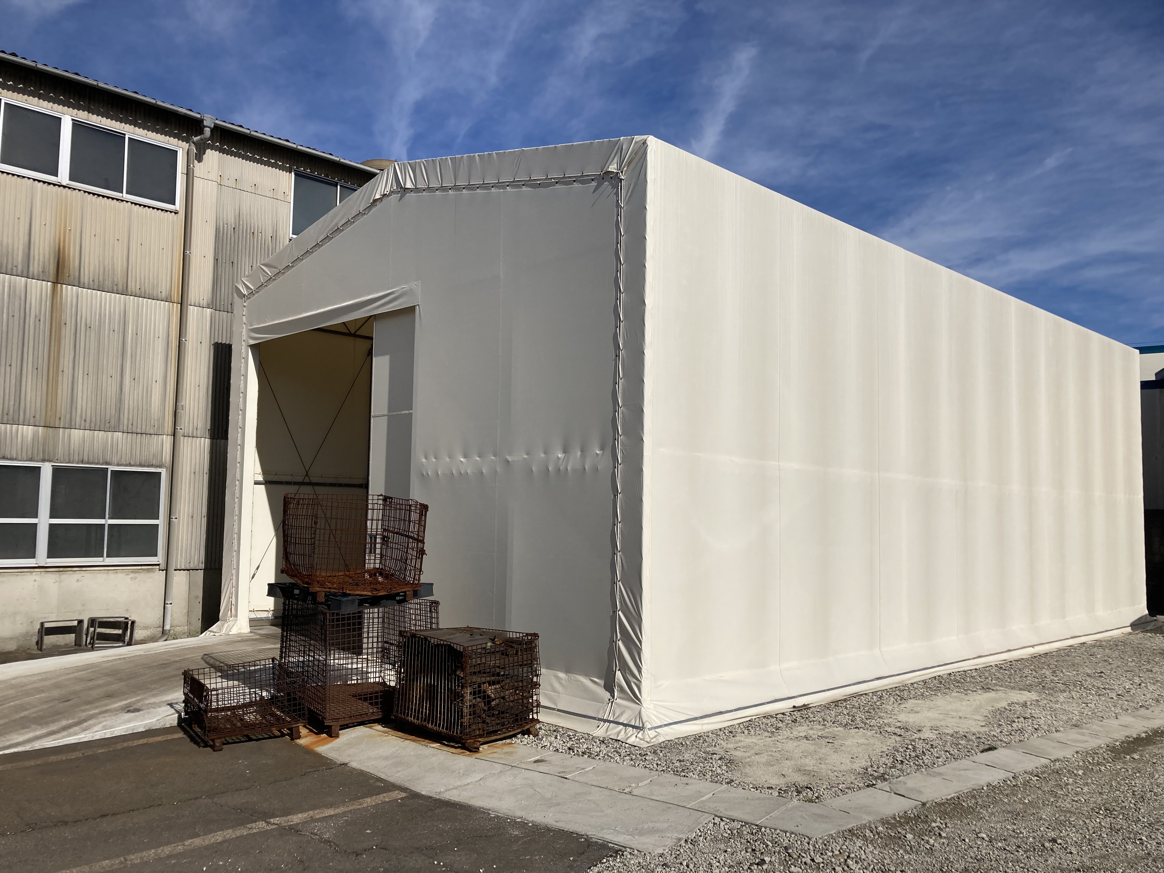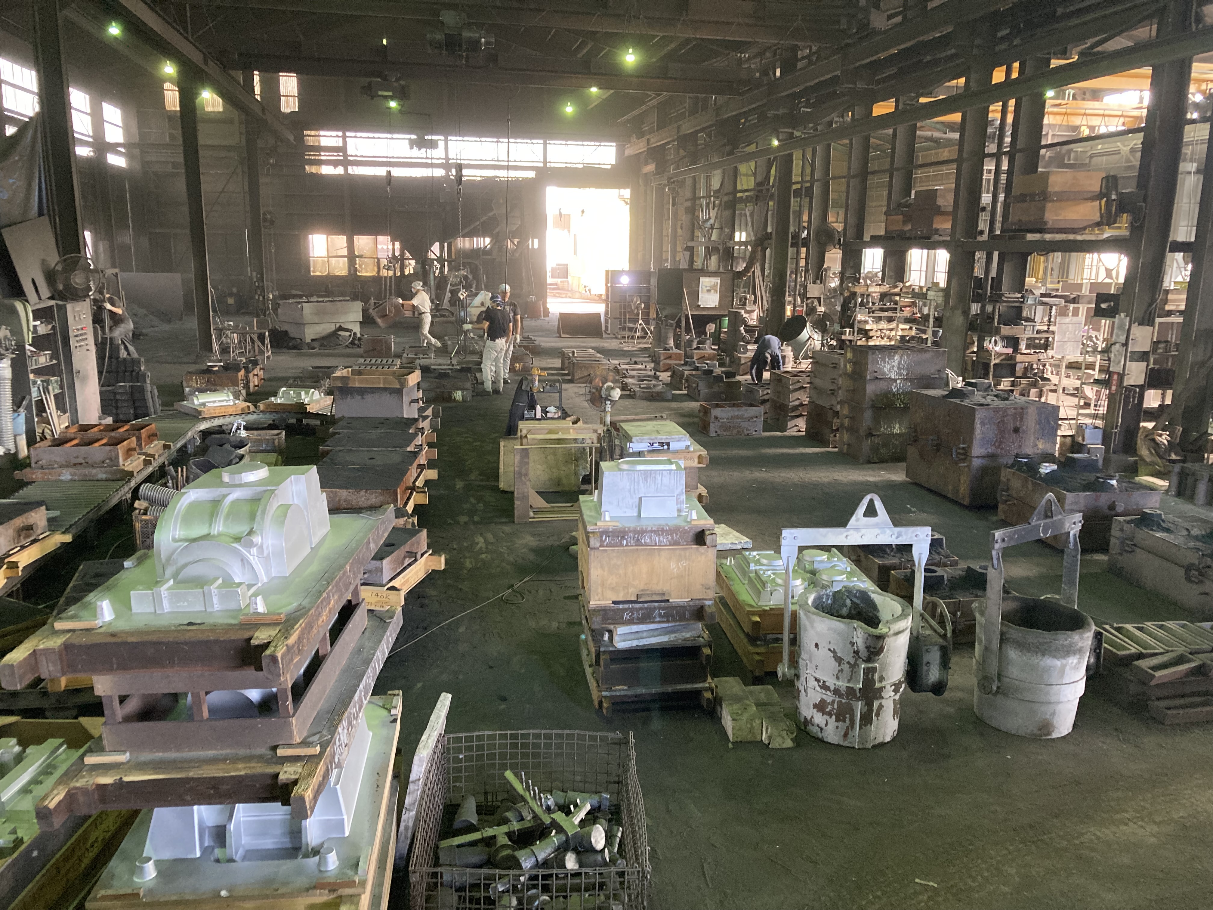 広い敷地に大小各種の金枠を常備し、テント倉庫等に木型を置く